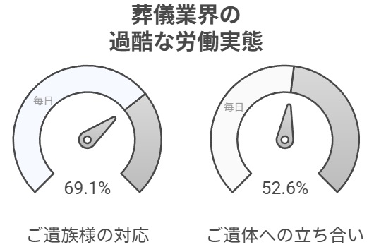イタリアの葬儀業界研究(2020年)では、229人の従業員を対象に調査が行われ、69.1%が毎日ご遺族と接し、52.6%が毎日ご遺体を目にしているという過酷な労働実態が明らかになりました。