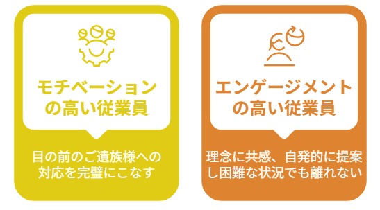 例えば、葬儀業界において、モチベーションの高い従業員は目の前のご遺族への対応を完璧にこなしますが、エンゲージメントの高い従業員は組織の理念に共感し、自ら改善提案を行い、困難な状況でも組織に留まり続けます。