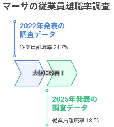 マーサの2025年従業員離職率調査によると、全体の離職率は13.5%まで低下し、2022年の24.7%から大きく改善しました。