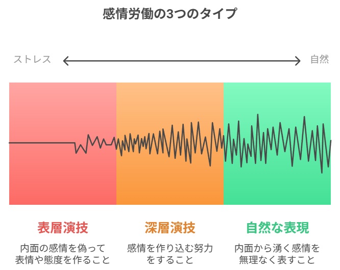 医療・福祉分野の研究から、感情労働には3つのタイプがあることが明らかになっています。