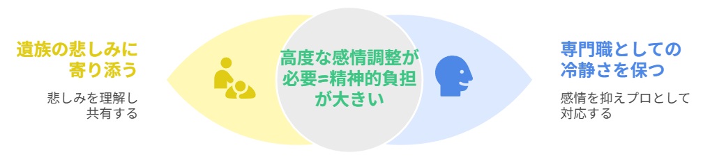 葬儀業界では、ご遺族様の悲しみに寄り添いながらも、専門職としての冷静さを保つという高度な感情調整が求められます。