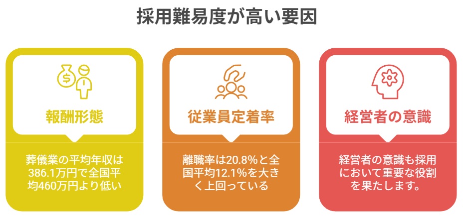 このセクションでは、以下の3つの視点から葬儀業界の採用難易度を詳しく解説していきます。