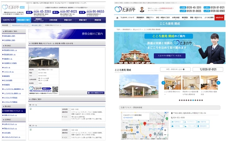 上記は葬儀屋.jpでスチール撮影を実施し、リニューアルした葬儀社様のホームページですが、雰囲気の変化がより明確に感じ取っていただけるかと存じます。